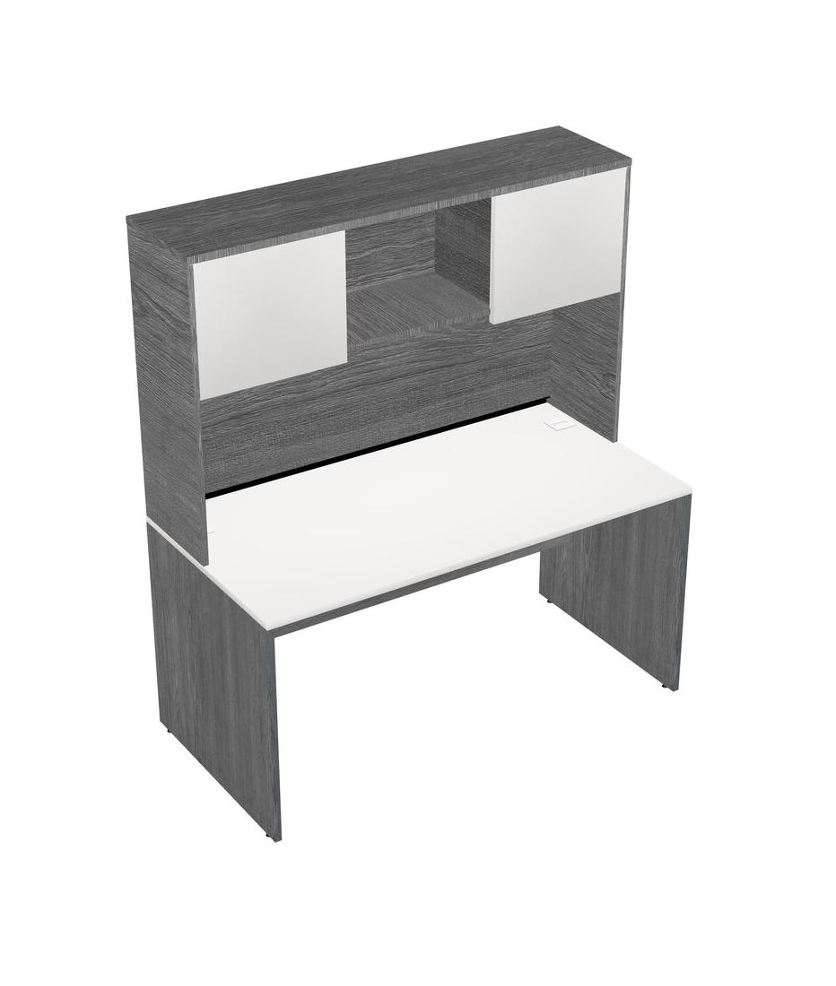 White Rectangular Office Desk And Grey Hutch
