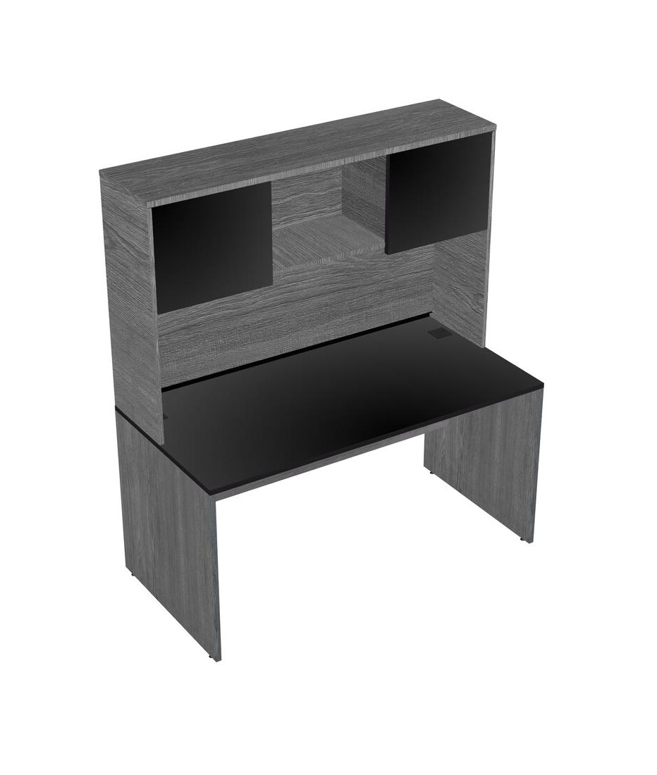 Black Rectangular Office Desk And Grey Hutch