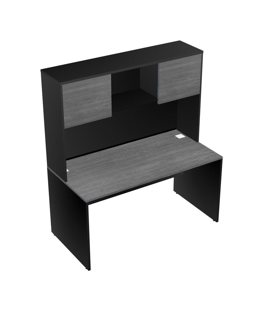 Grey Rectangular Office Desk And Black Hutch