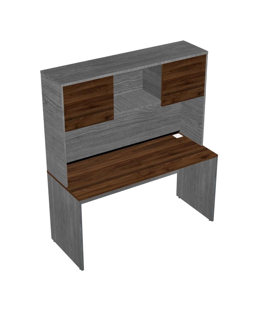 Columbia Walnut Rectangular Office Desk And Grey Hutch