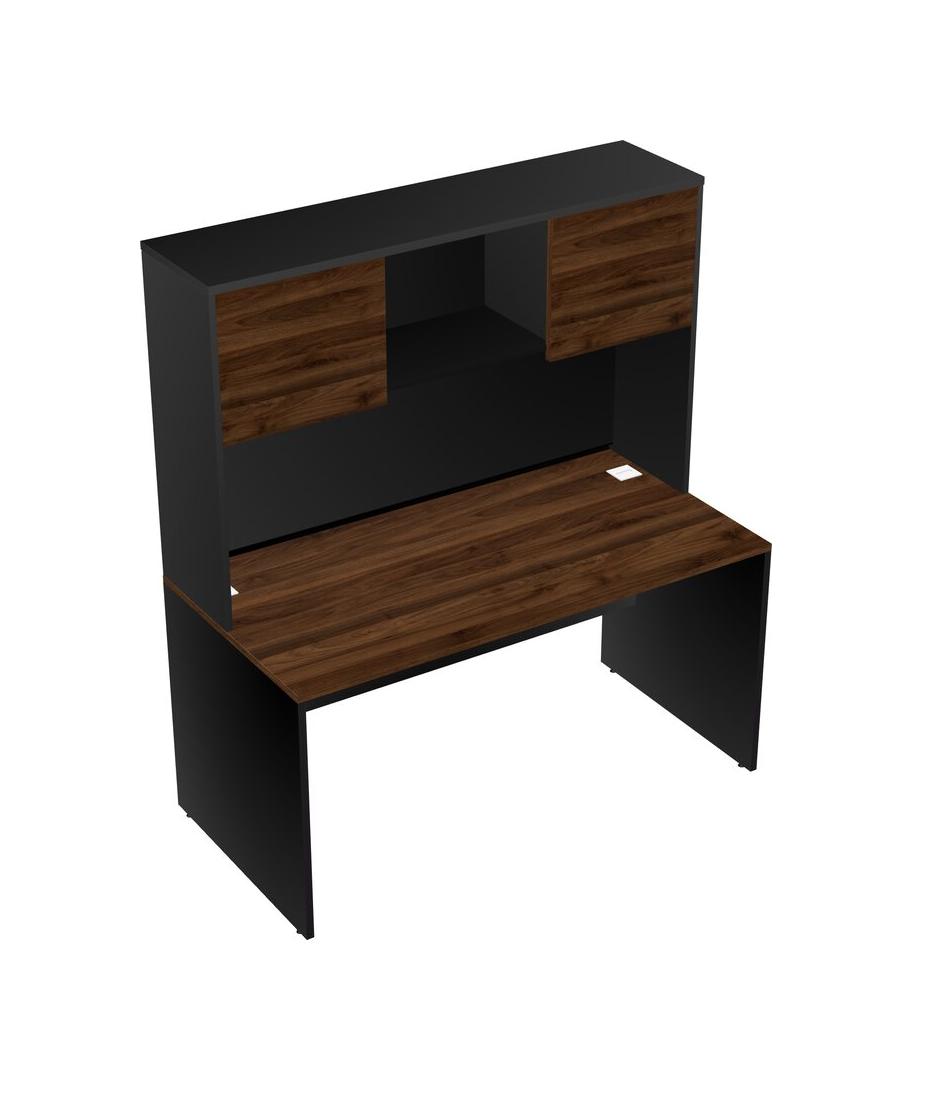 Columbia Walnut Rectangular Office Desk And Black Hutch