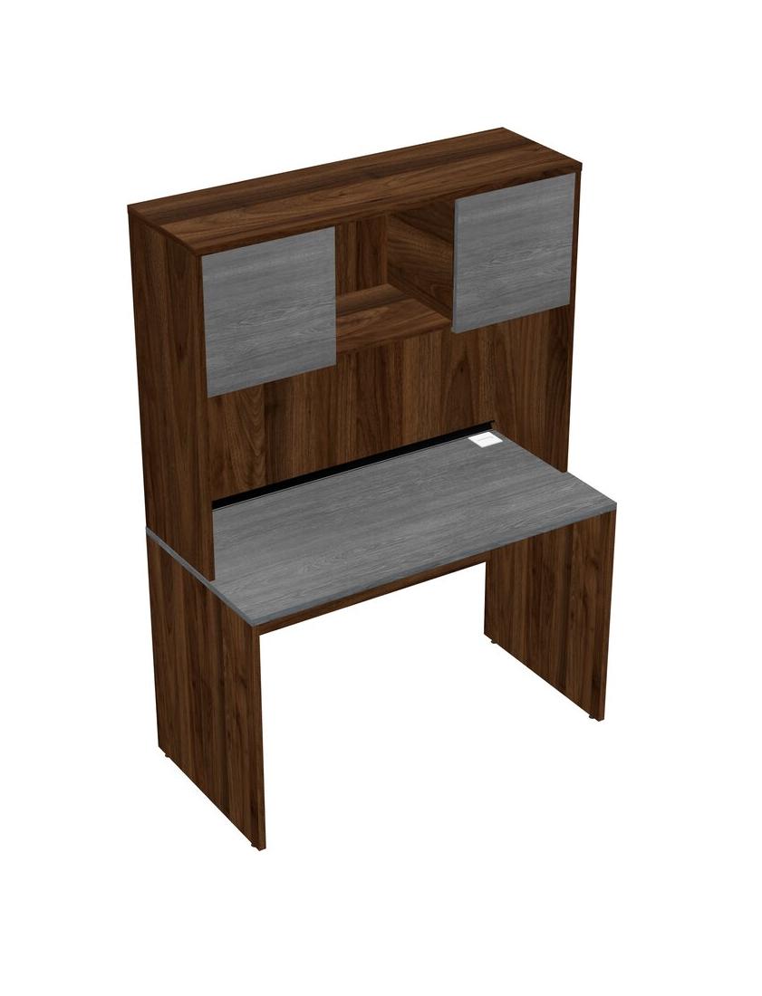 Grey Rectangular Office Desk And Columbia Walnut Hutch