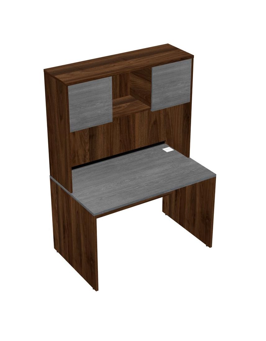 Grey Rectangular Office Desk And Columbia Walnut Hutch