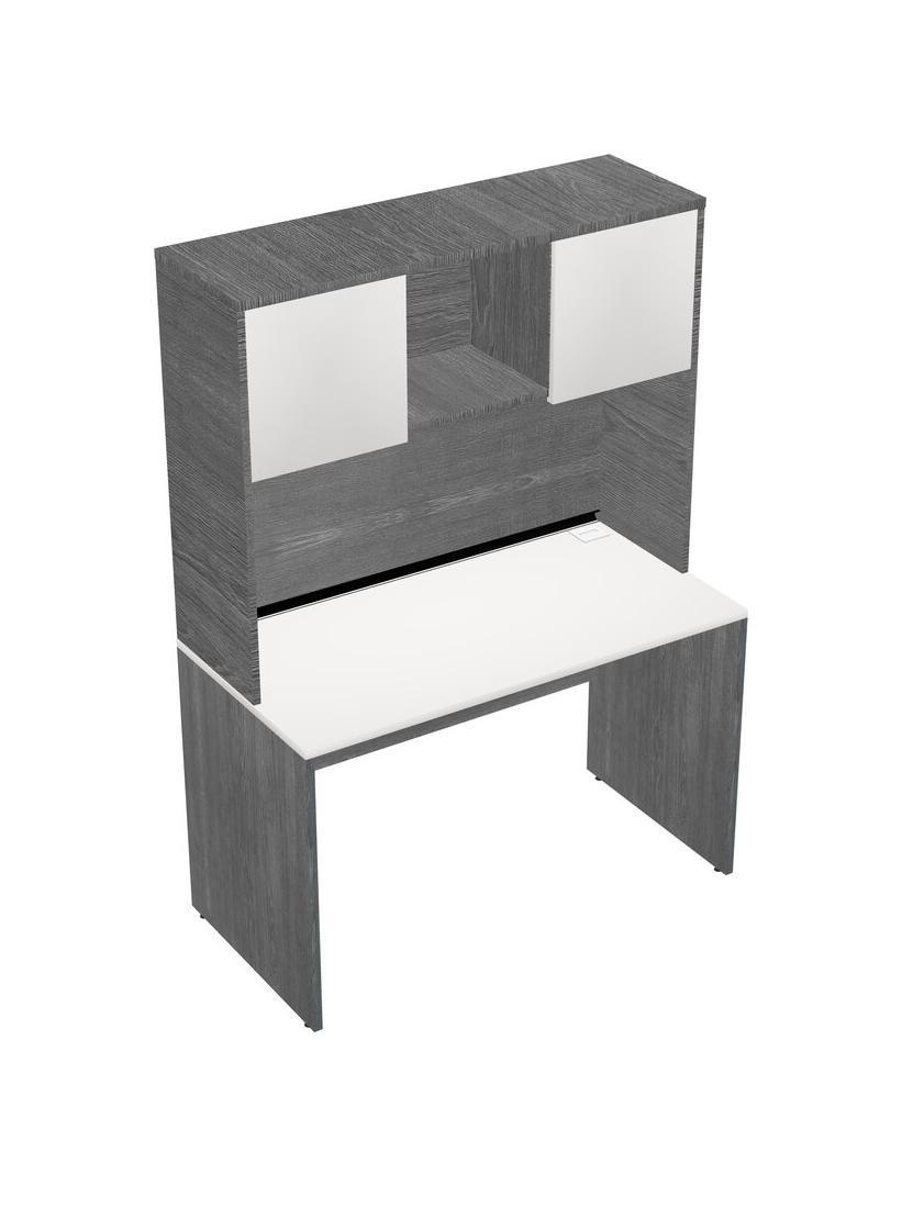White Rectangular Office Desk And Grey Hutch