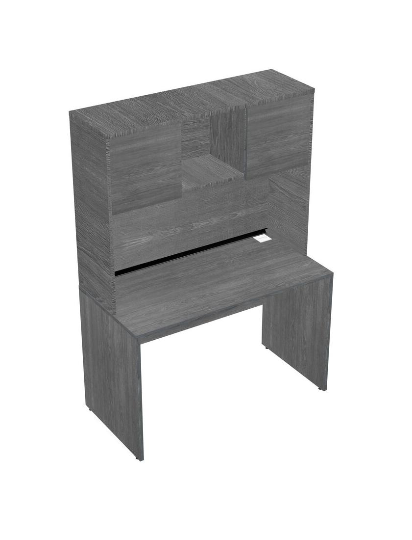 Grey Rectangular Office Desk And Grey Hutch