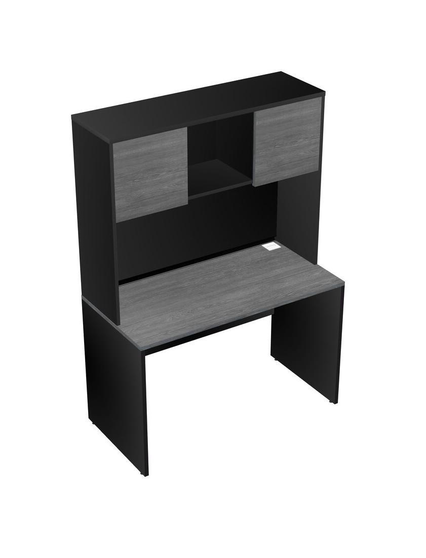 Grey Rectangular Office Desk And Black Hutch
