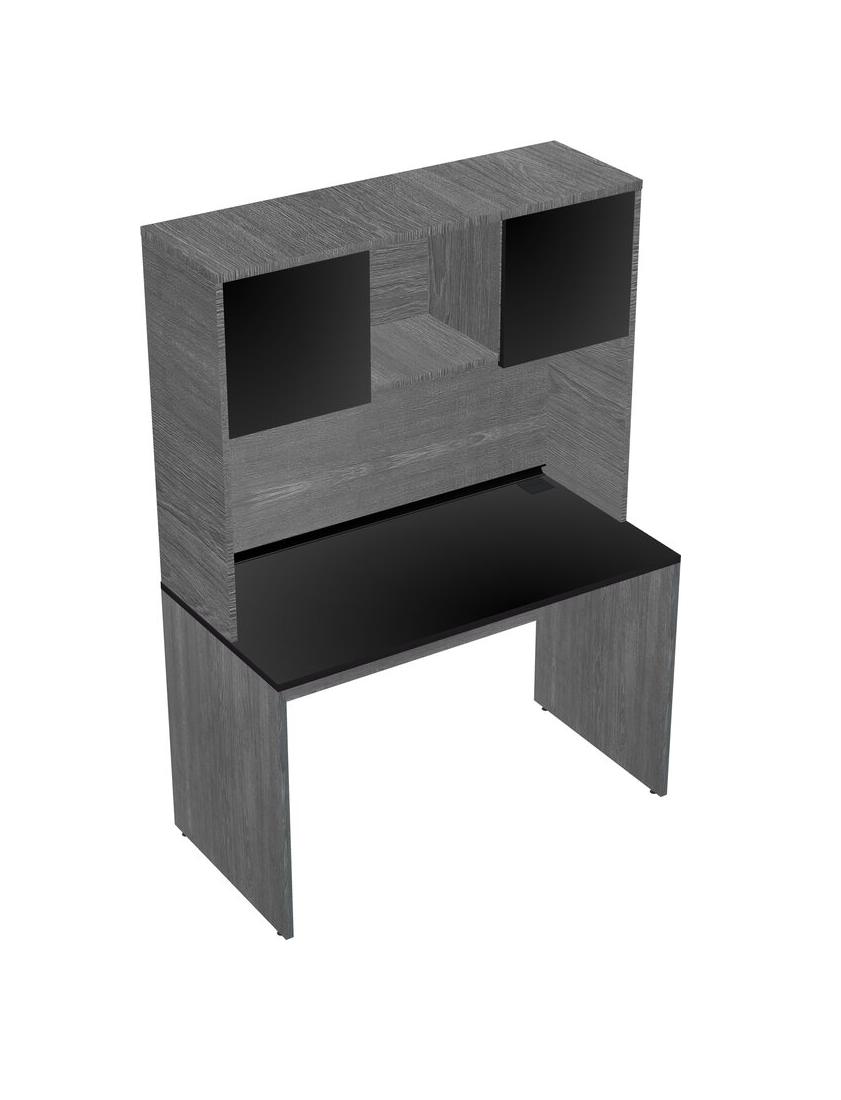 Black Rectangular Office Desk And Grey Hutch