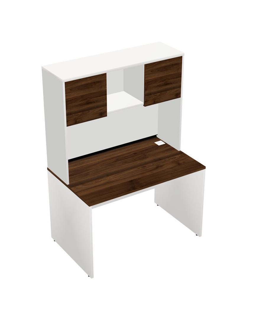 Columbia Walnut Rectangular Office Desk And White Hutch