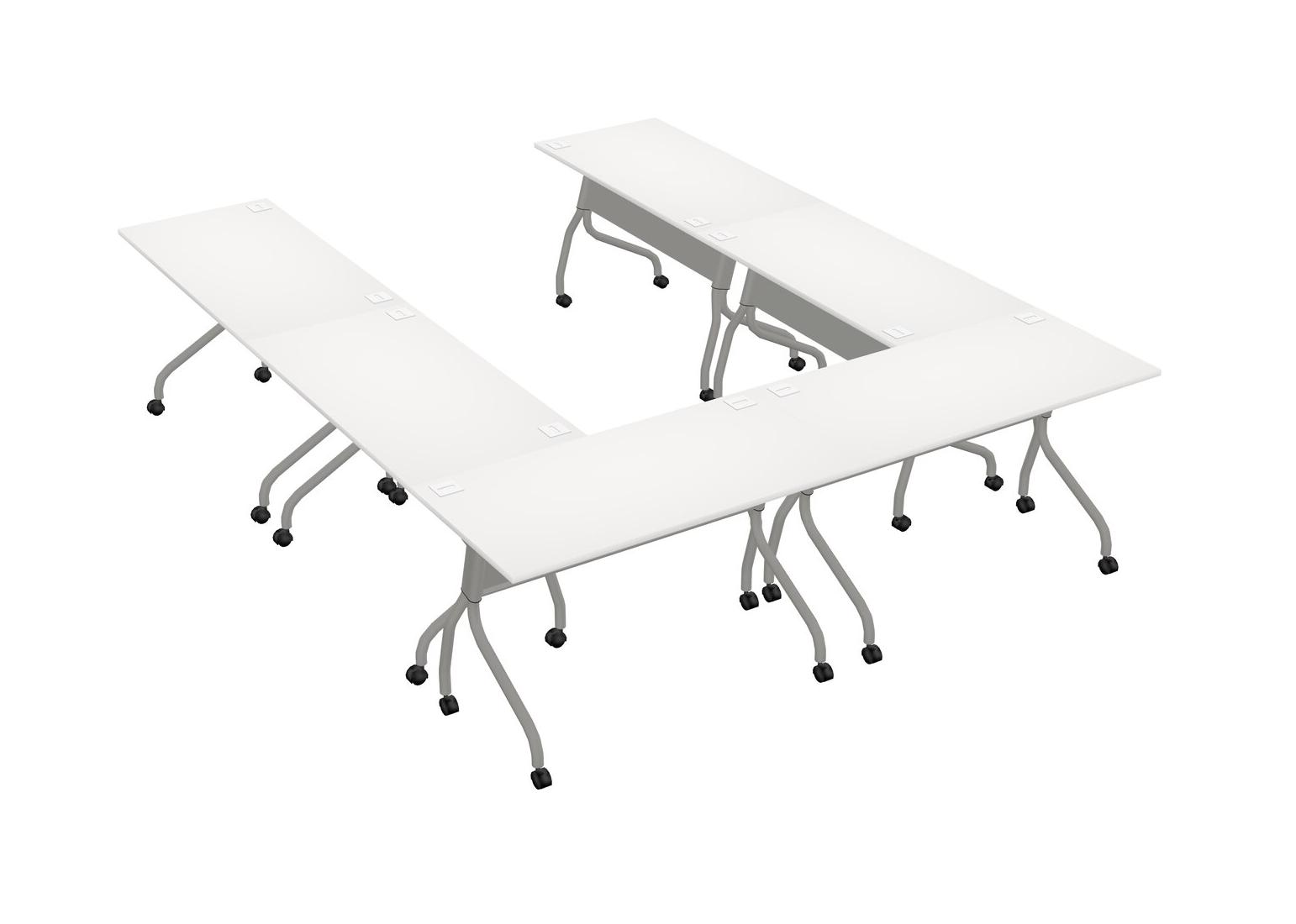 Mobile U-Shaped Training Table - Flip-Top Desk - Classroom Table - Seminar Table - White