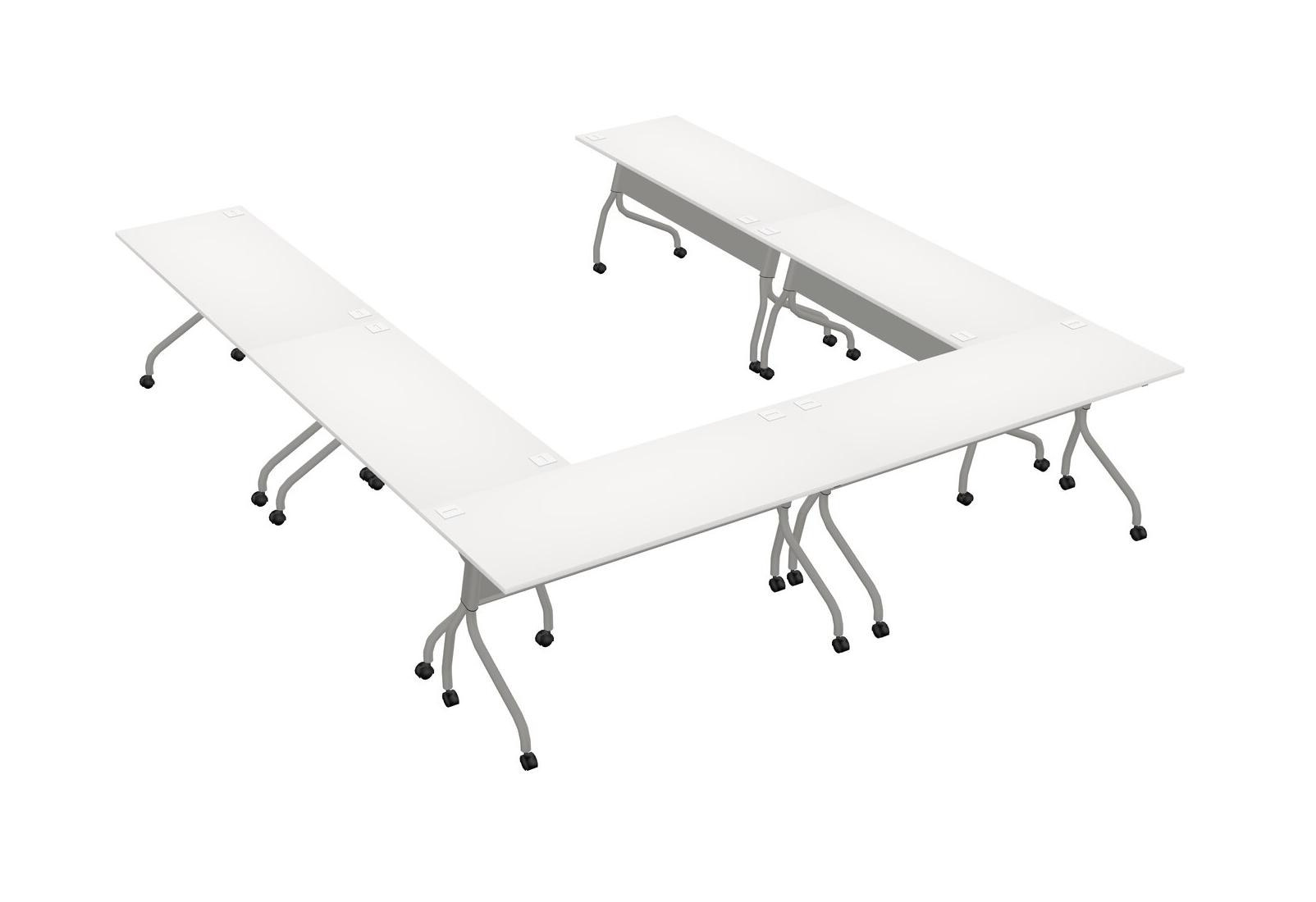 Mobile U-Shaped Training Table - Flip-Top Desk - Classroom Table - Seminar Table - White