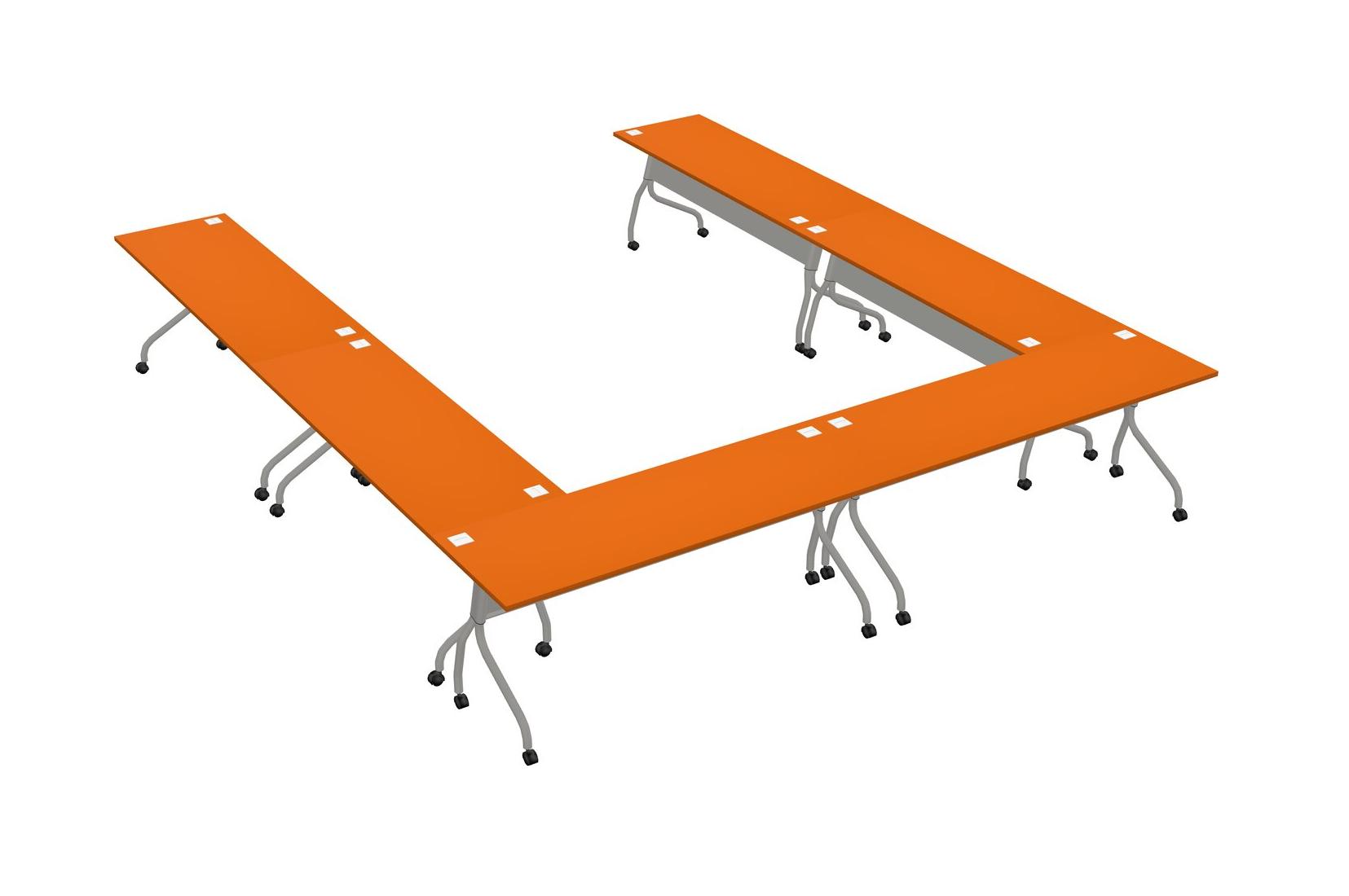 Mobile U-Shaped Training Table - Flip-Top Desk - Classroom Table - Seminar Table - Orange