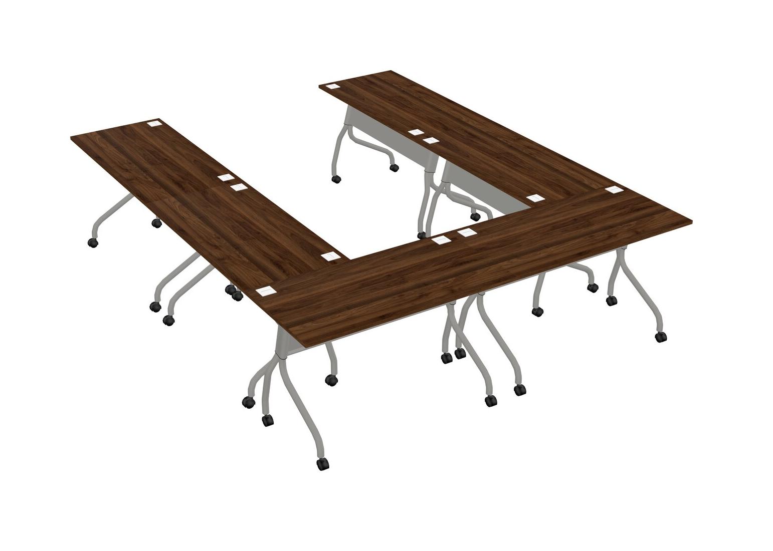 Mobile U-Shaped Training Table - Flip-Top Desk - Classroom Table - Seminar Table - Columbia Walnut