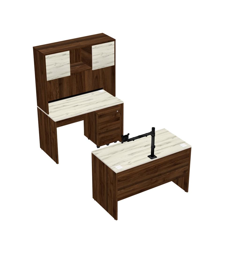 Office Parallel Desk Credenza Desk + Wooden Mobile Drawers + Hutch + Monitor Arm (single Arm)