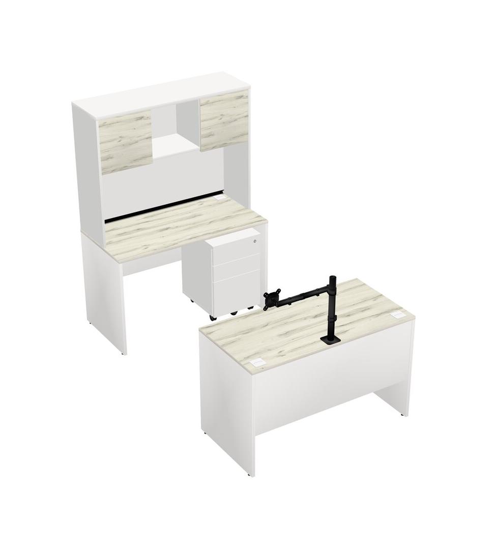Office Parallel Desk Credenza Desk + Wooden Mobile Drawers + Hutch + Monitor Arm (single Arm)