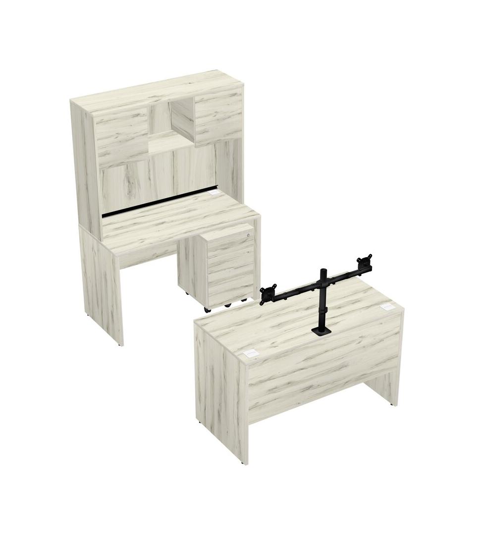 Office Parallel Desk Credenza Desk + Wooden Mobile Drawers + Hutch + Monitor Arm (double Arms)