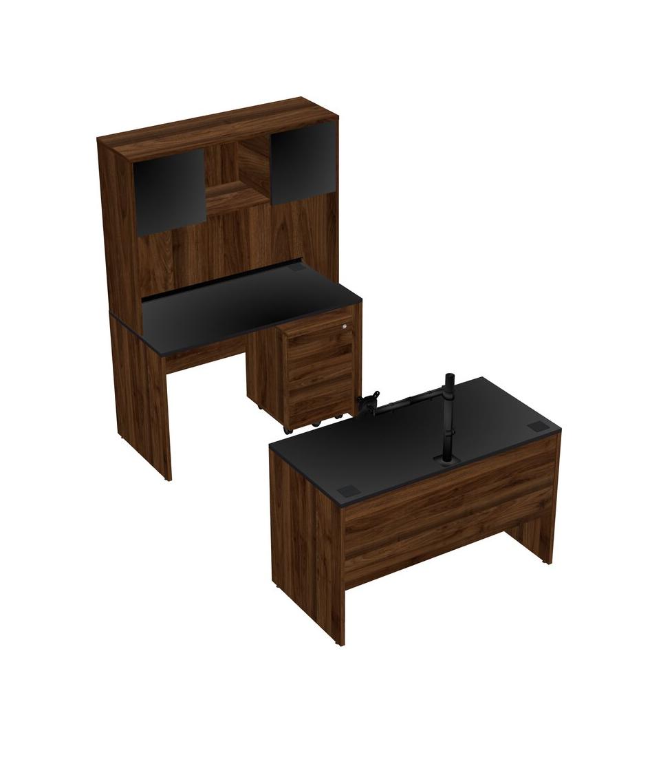 Office Parallel Desk Credenza Desk + Wooden Mobile Drawers + Hutch + Monitor Arm (single Arm)