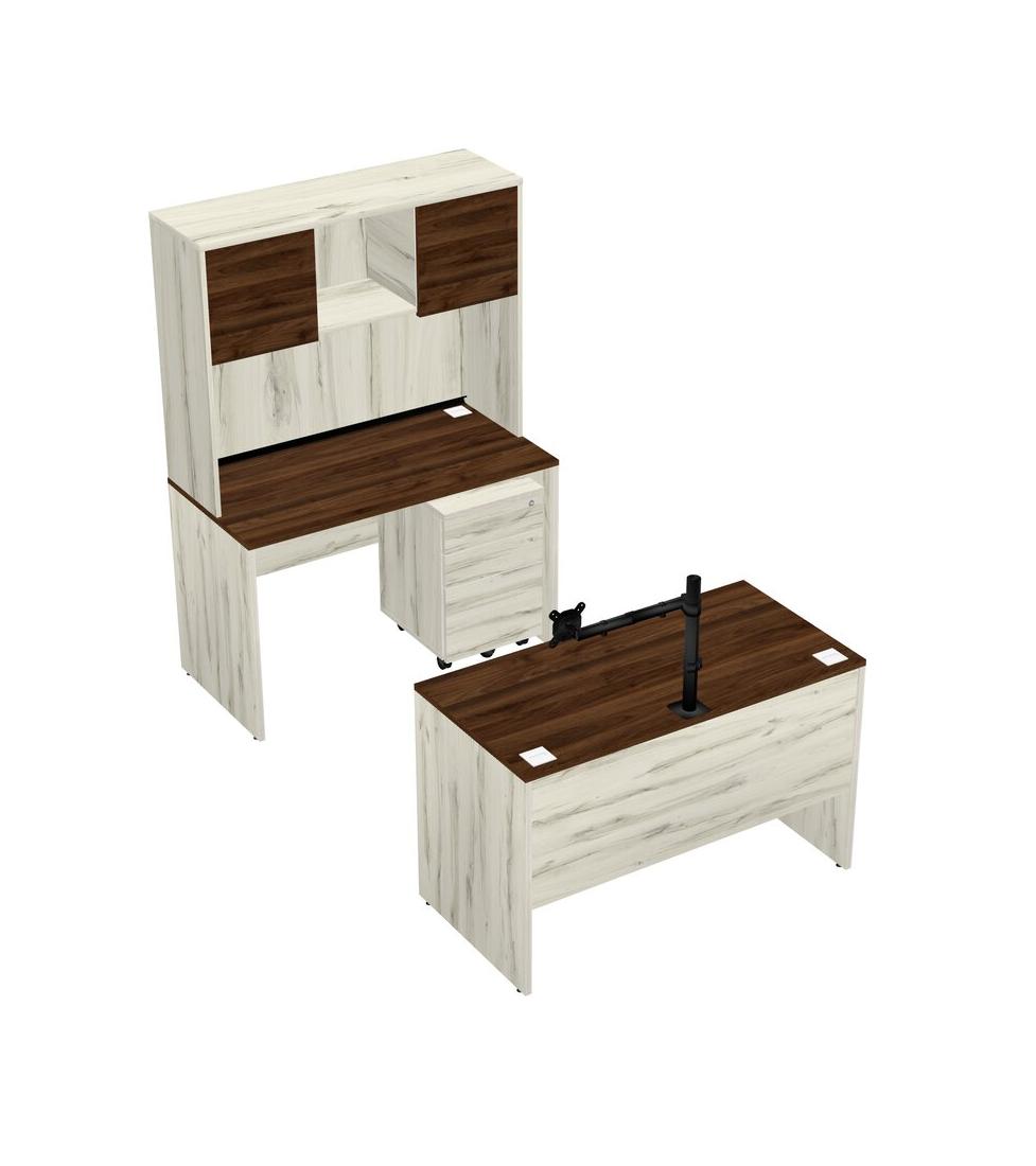 Office Parallel Desk Credenza Desk + Wooden Mobile Drawers + Hutch + Monitor Arm (single Arm)