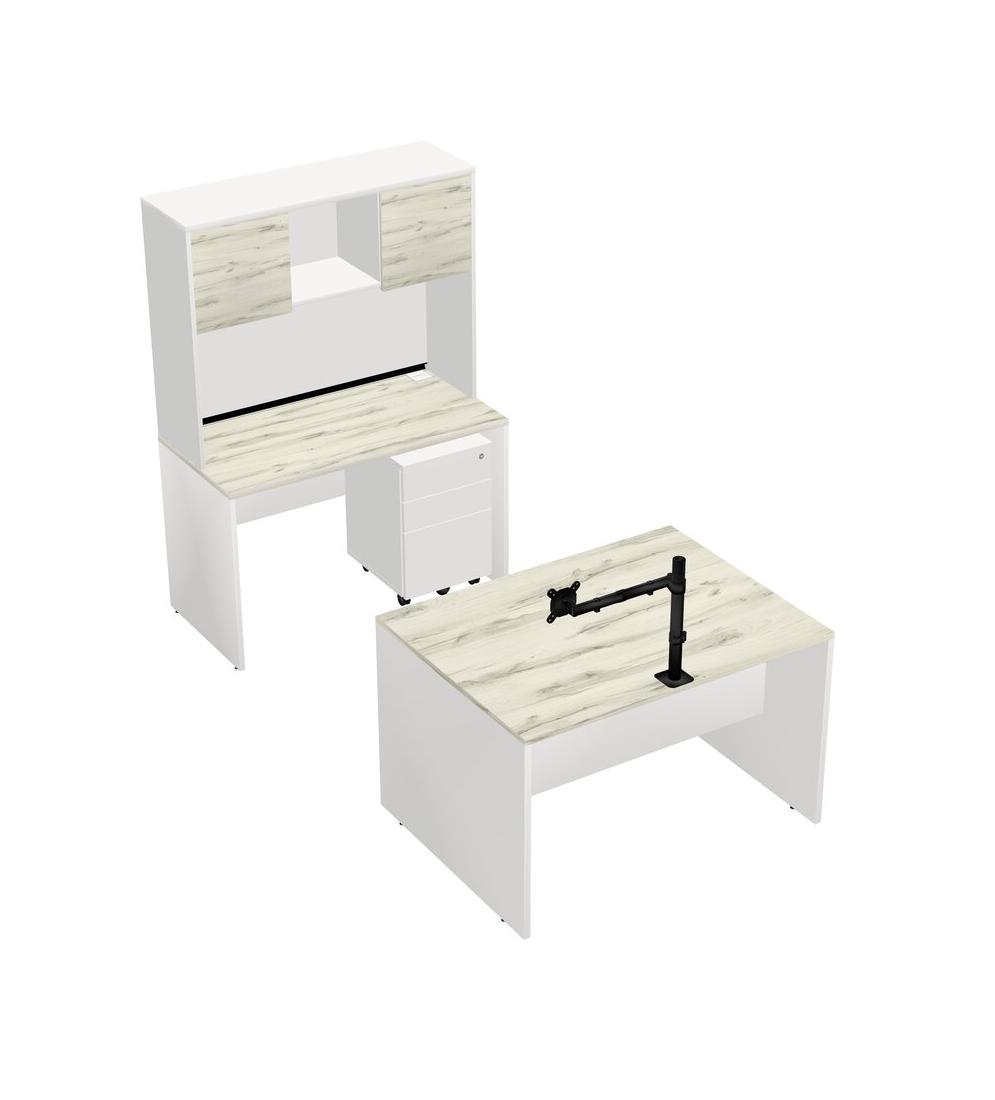 Office Parallel Desk Credenza Desk + Wooden Mobile Drawers + Hutch + Monitor Arm (single Arm)