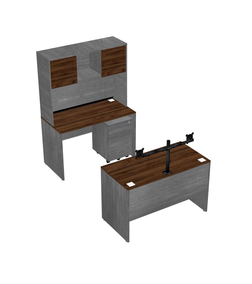 Office Parallel Desk Credenza Desk + Wooden Mobile Drawers + Hutch + Monitor Arm (double Arms)