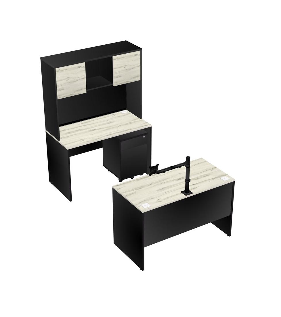 Office Parallel Desk Credenza Desk + Wooden Mobile Drawers + Hutch + Monitor Arm (single Arm)