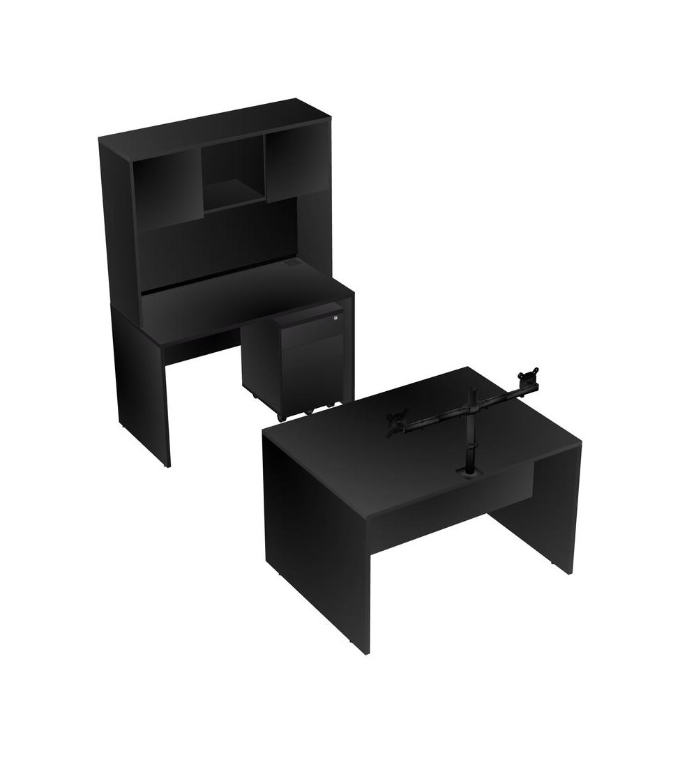 Office Parallel Desk Credenza Desk + Wooden Mobile Drawers + Hutch + Monitor Arm (double Arms)