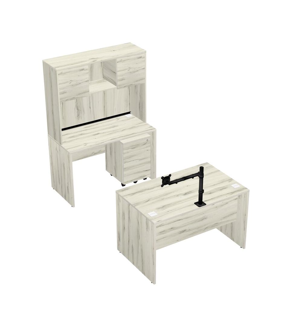 Office Parallel Desk Credenza Desk + Wooden Mobile Drawers + Hutch + Monitor Arm (single Arm)