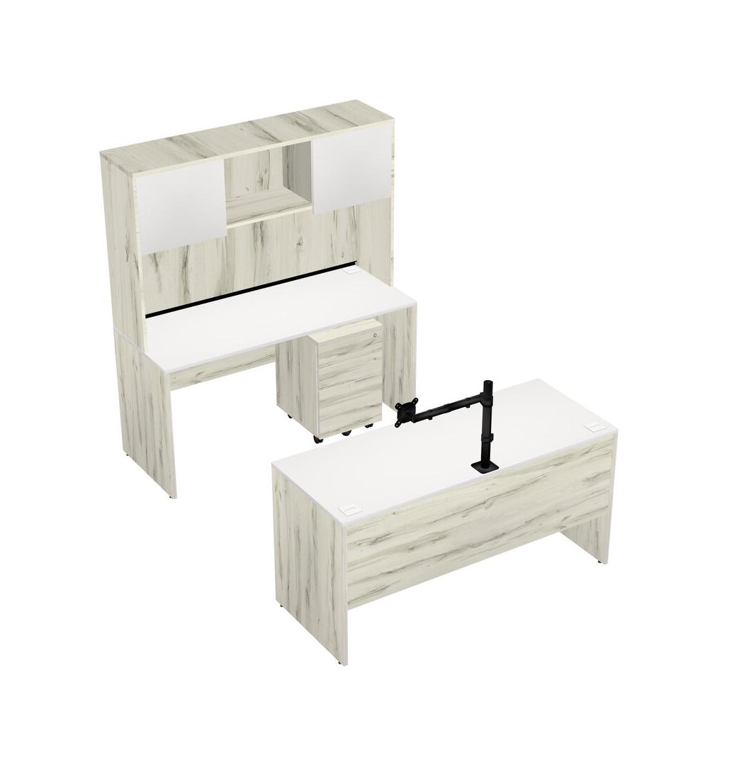 Office Parallel Desk Credenza Desk + Wooden Mobile Drawers + Hutch + Monitor Arm (single Arm)
