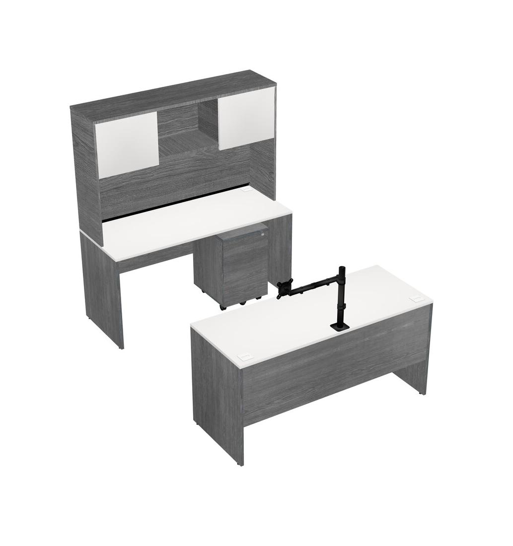 Office Parallel Desk Credenza Desk + Wooden Mobile Drawers + Hutch + Monitor Arm (single Arm)