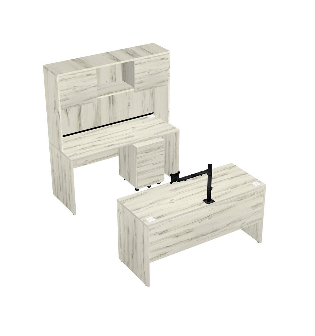 Office Parallel Desk Credenza Desk + Wooden Mobile Drawers + Hutch + Monitor Arm (single Arm)