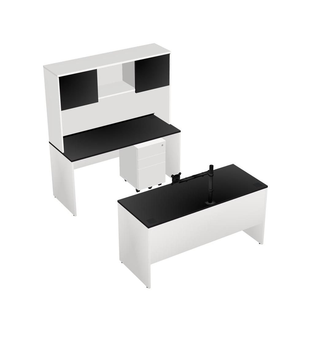 Office Parallel Desk Credenza Desk + Wooden Mobile Drawers + Hutch + Monitor Arm (single Arm)