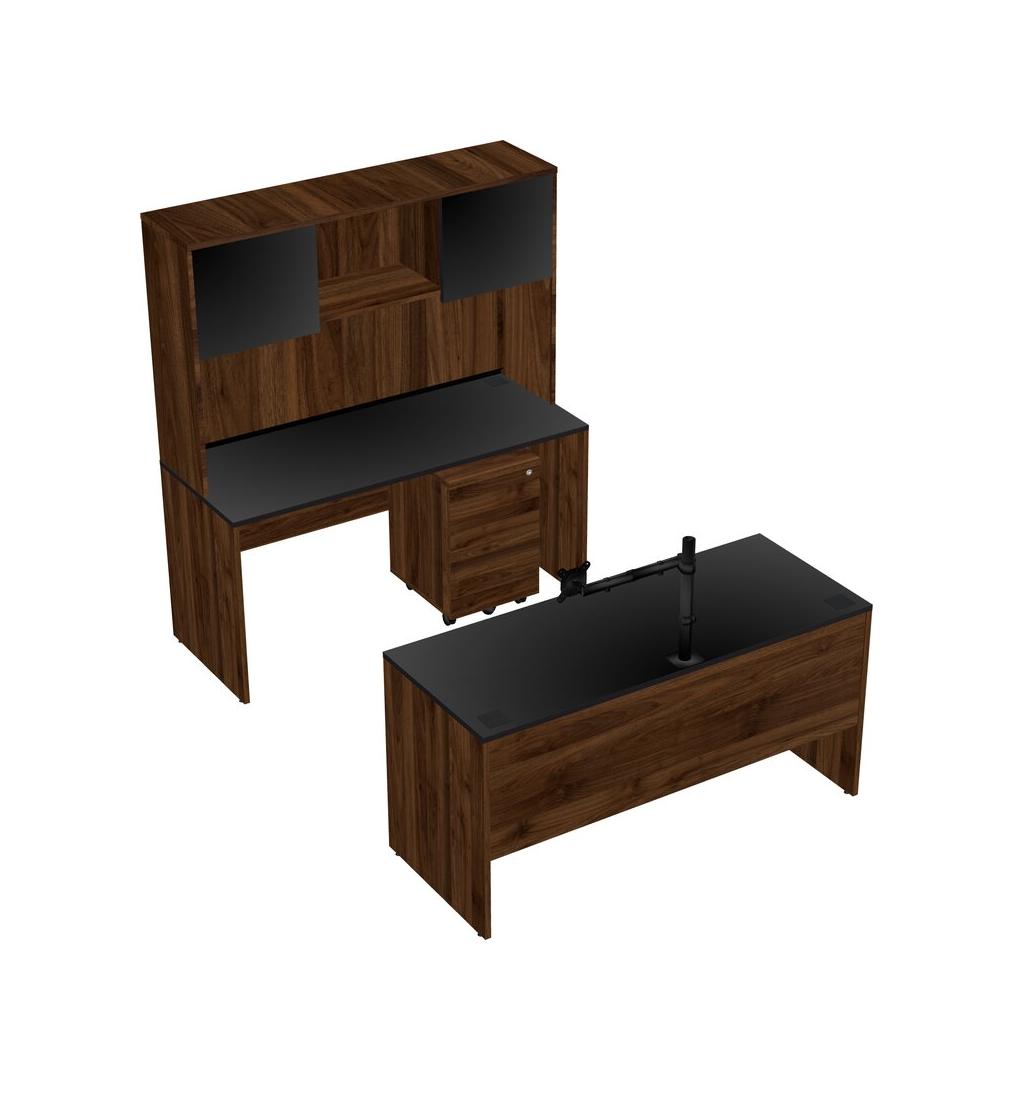 Office Parallel Desk Credenza Desk + Wooden Mobile Drawers + Hutch + Monitor Arm (single Arm)