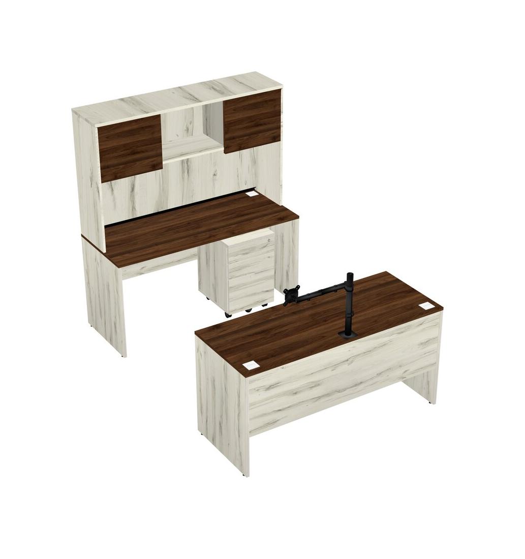 Office Parallel Desk Credenza Desk + Wooden Mobile Drawers + Hutch + Monitor Arm (single Arm)