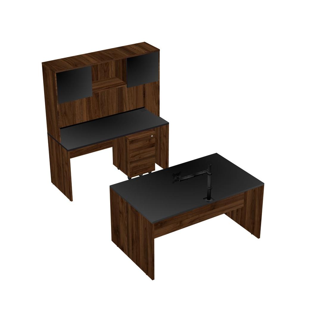 Office Parallel Desk Credenza Desk + Wooden Mobile Drawers + Hutch + Monitor Arm (single Arm)