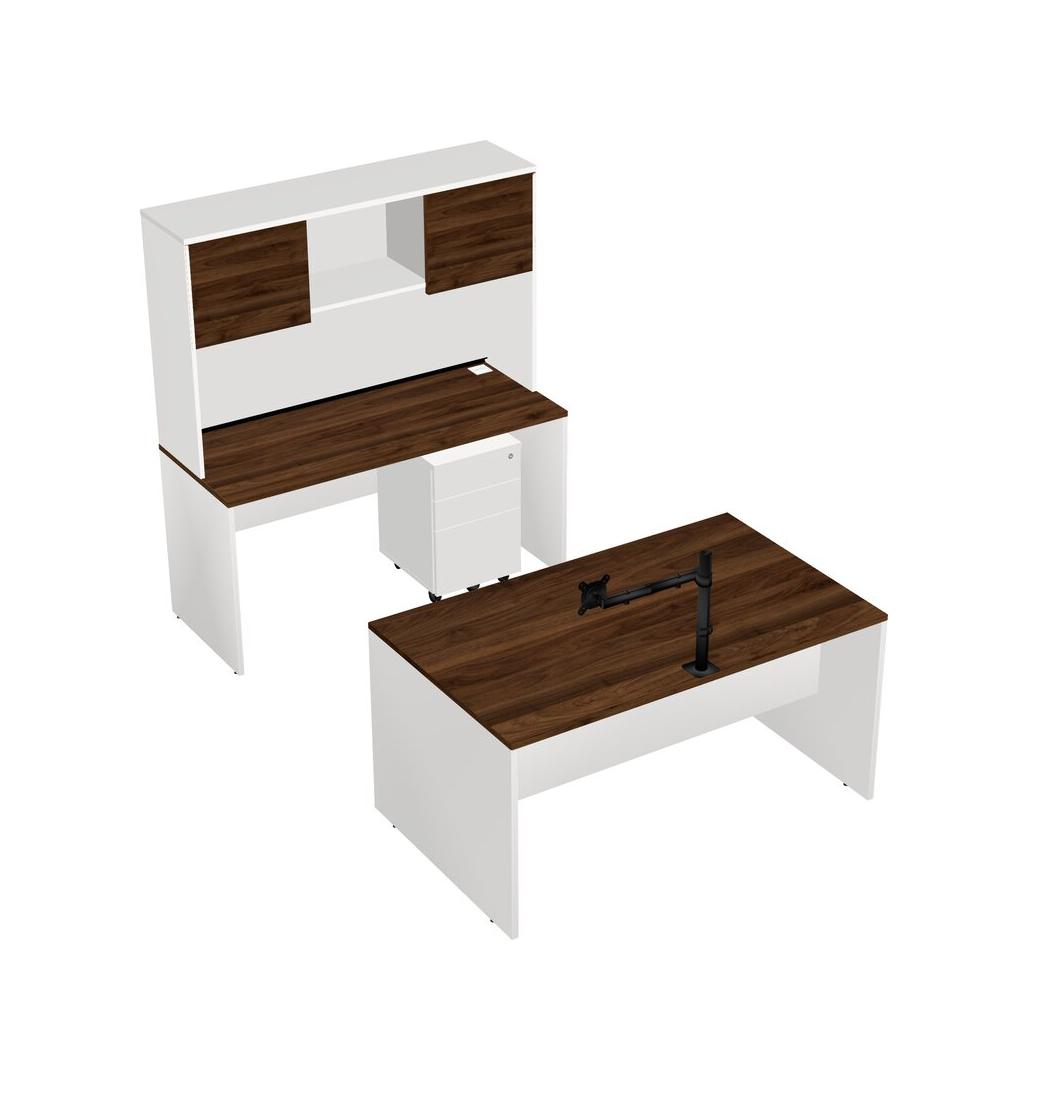Office Parallel Desk Credenza Desk + Wooden Mobile Drawers + Hutch + Monitor Arm (single Arm)