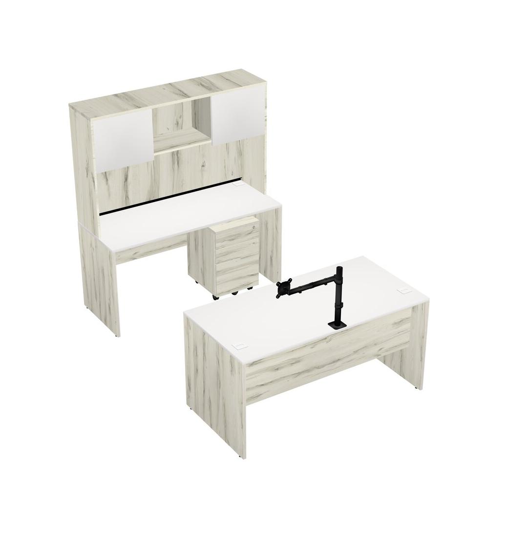 Office Parallel Desk Credenza Desk + Wooden Mobile Drawers + Hutch + Monitor Arm (single Arm)