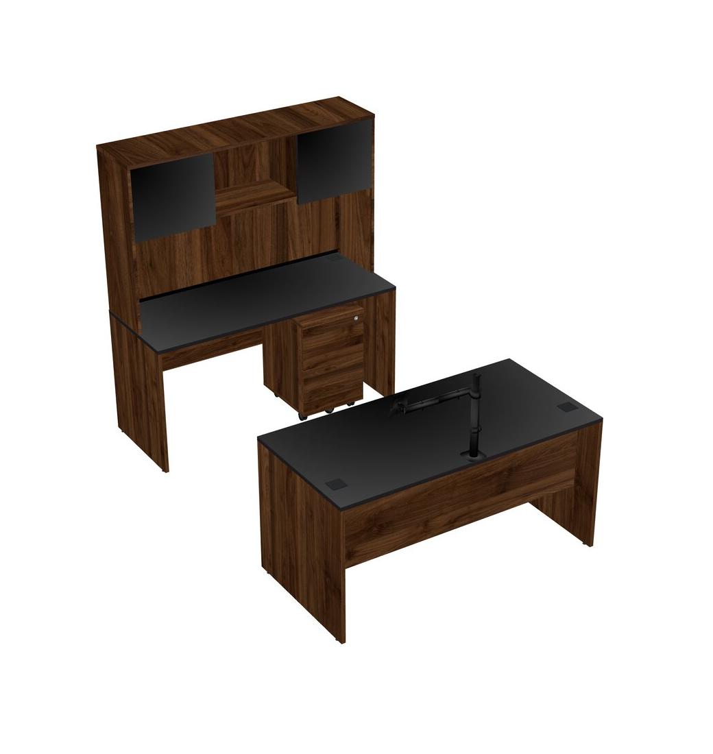 Office Parallel Desk Credenza Desk + Wooden Mobile Drawers + Hutch + Monitor Arm (single Arm)