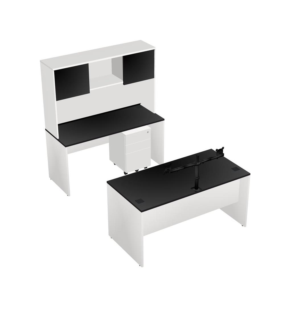 Office Parallel Desk Credenza Desk + Wooden Mobile Drawers + Hutch + Monitor Arm (double Arms)