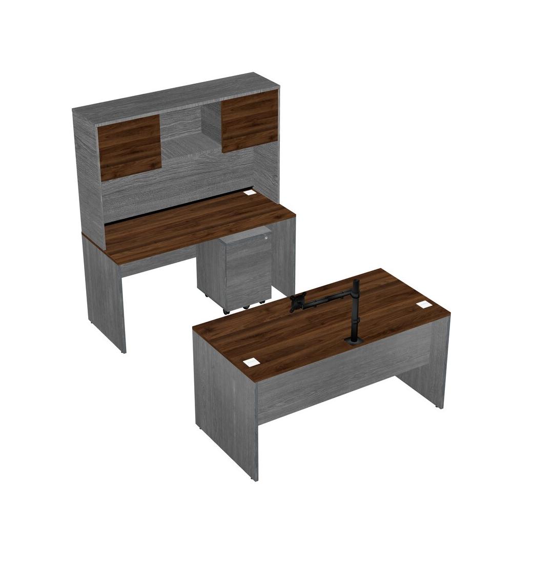 Office Parallel Desk Credenza Desk + Wooden Mobile Drawers + Hutch + Monitor Arm (single Arm)