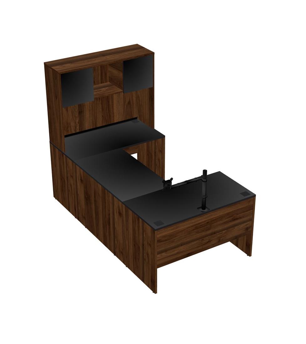 Office U-shaped Desk Credenza Desk + Hutch + Monitor Arm (single Arm)