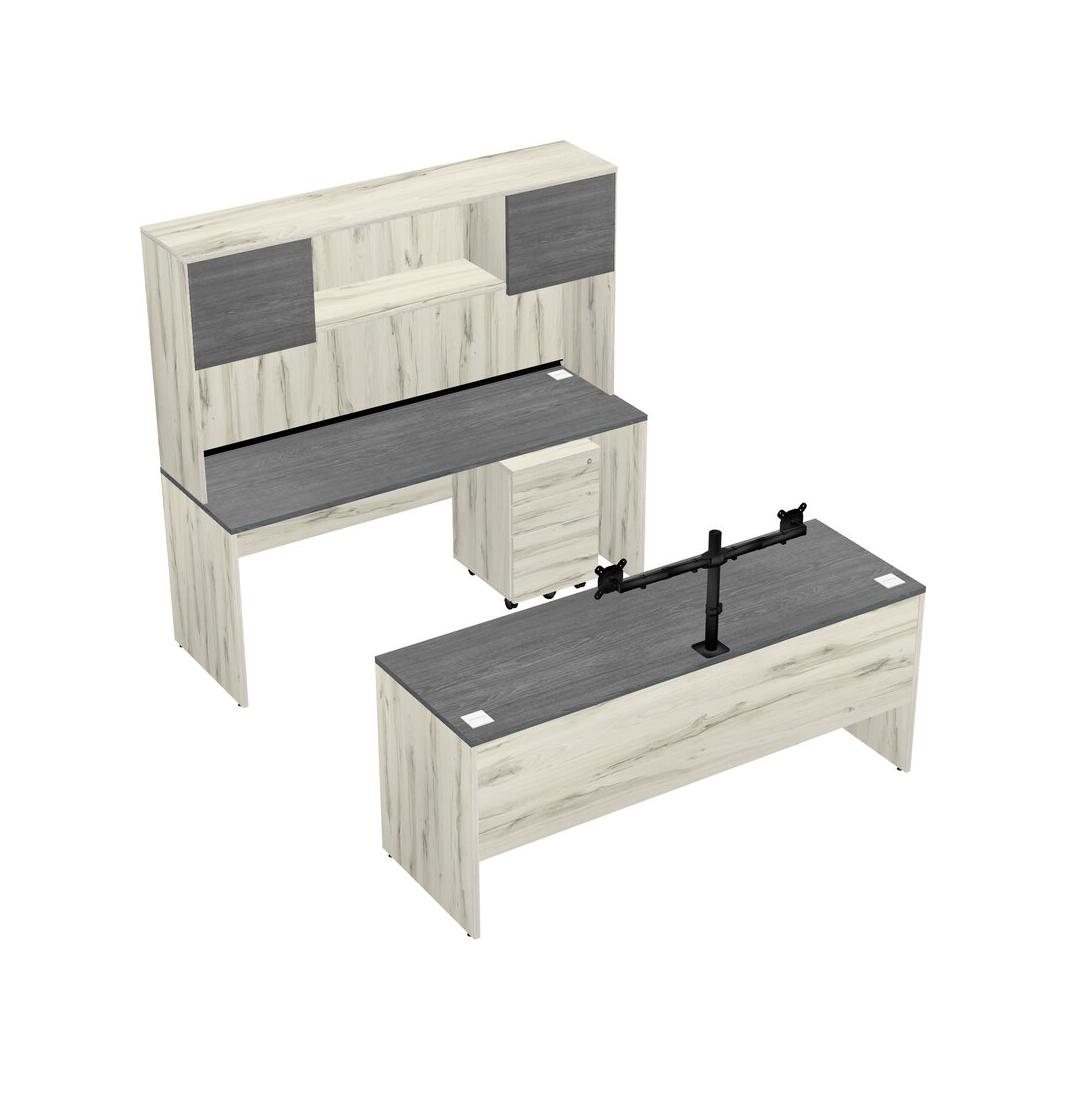 Office Parallel Desk Credenza Desk + Wooden Mobile Drawers + Hutch + Monitor Arm (double Arms)