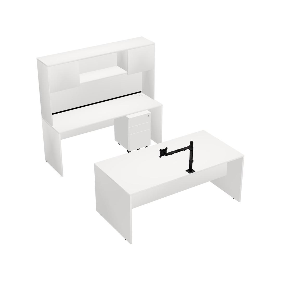 Office Parallel Desk Credenza Desk + Wooden Mobile Drawers + Hutch + Monitor Arm (single Arm)