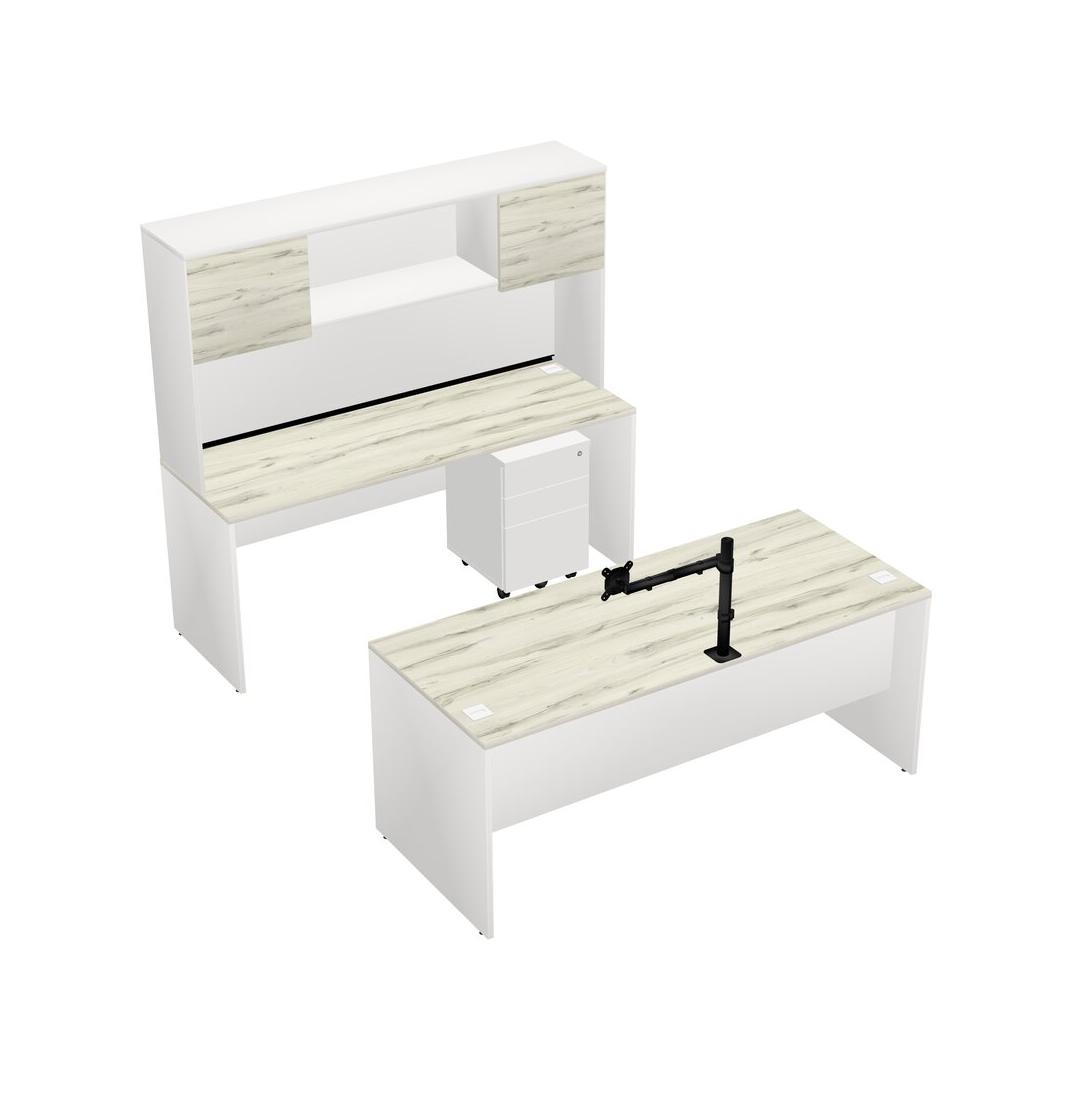Office Parallel Desk Credenza Desk + Wooden Mobile Drawers + Hutch + Monitor Arm (single Arm)