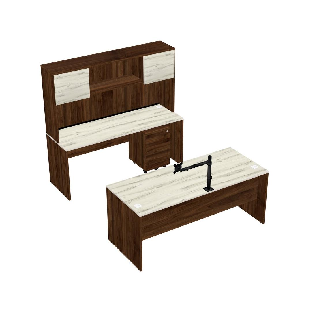 Office Parallel Desk Credenza Desk + Wooden Mobile Drawers + Hutch + Monitor Arm (single Arm)