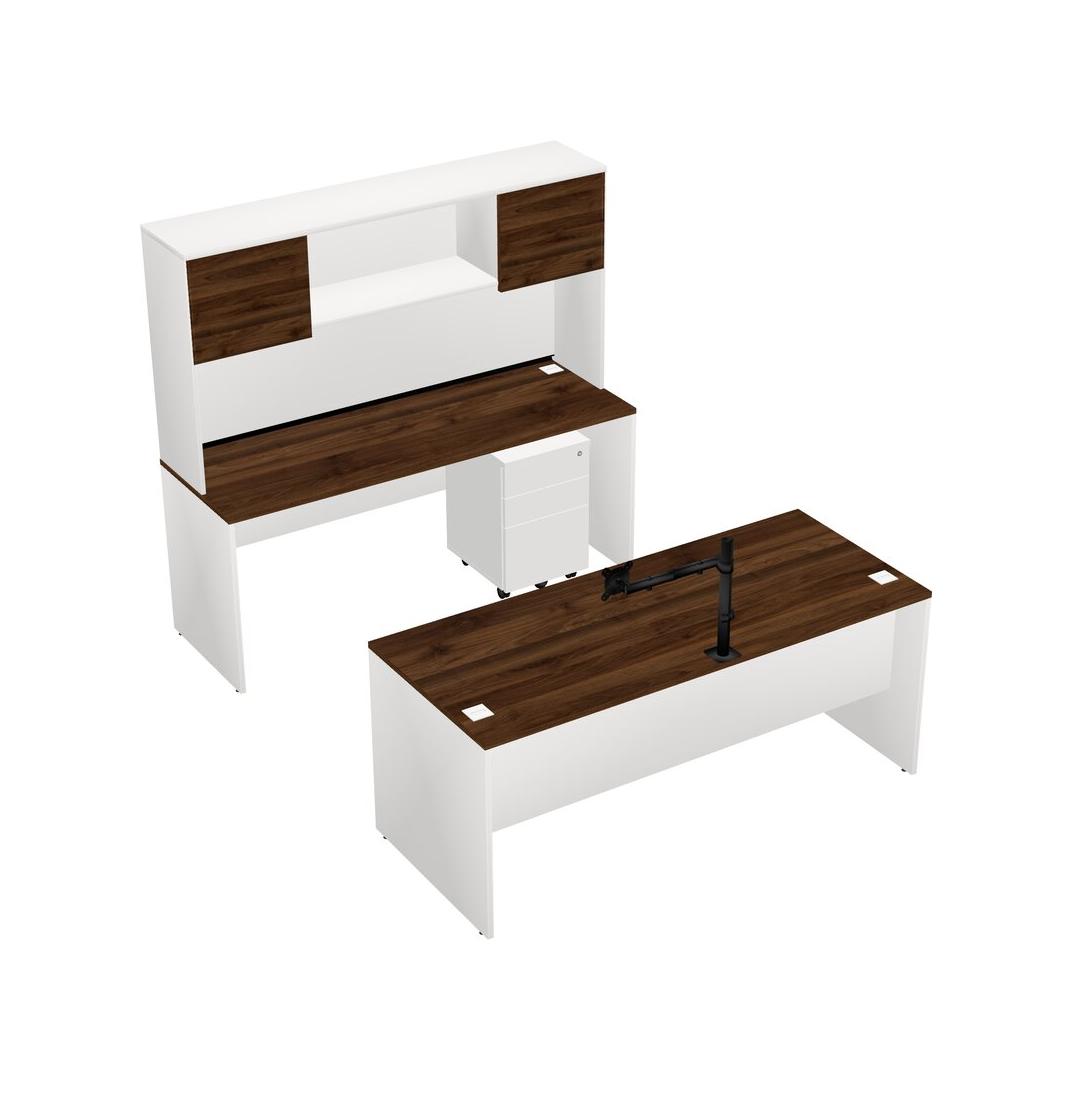 Office Parallel Desk Credenza Desk + Wooden Mobile Drawers + Hutch + Monitor Arm (single Arm)
