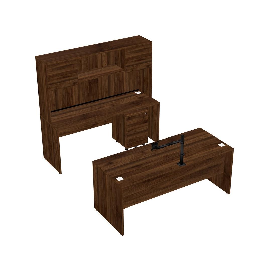 Office Parallel Desk Credenza Desk + Wooden Mobile Drawers + Hutch + Monitor Arm (single Arm)
