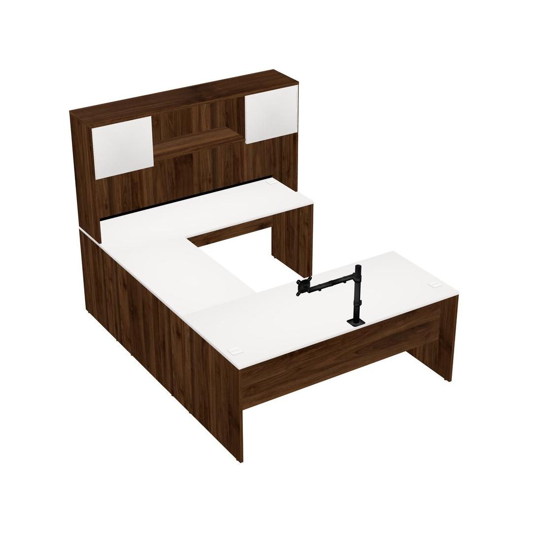 Office U-shaped Desk Credenza Desk + Hutch + Monitor Arm (single Arm)