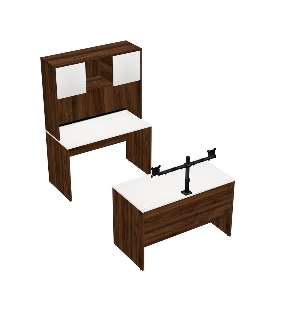 Office Parallel Desk Credenza Desk + Hutch + Monitor Arm (double Arms)