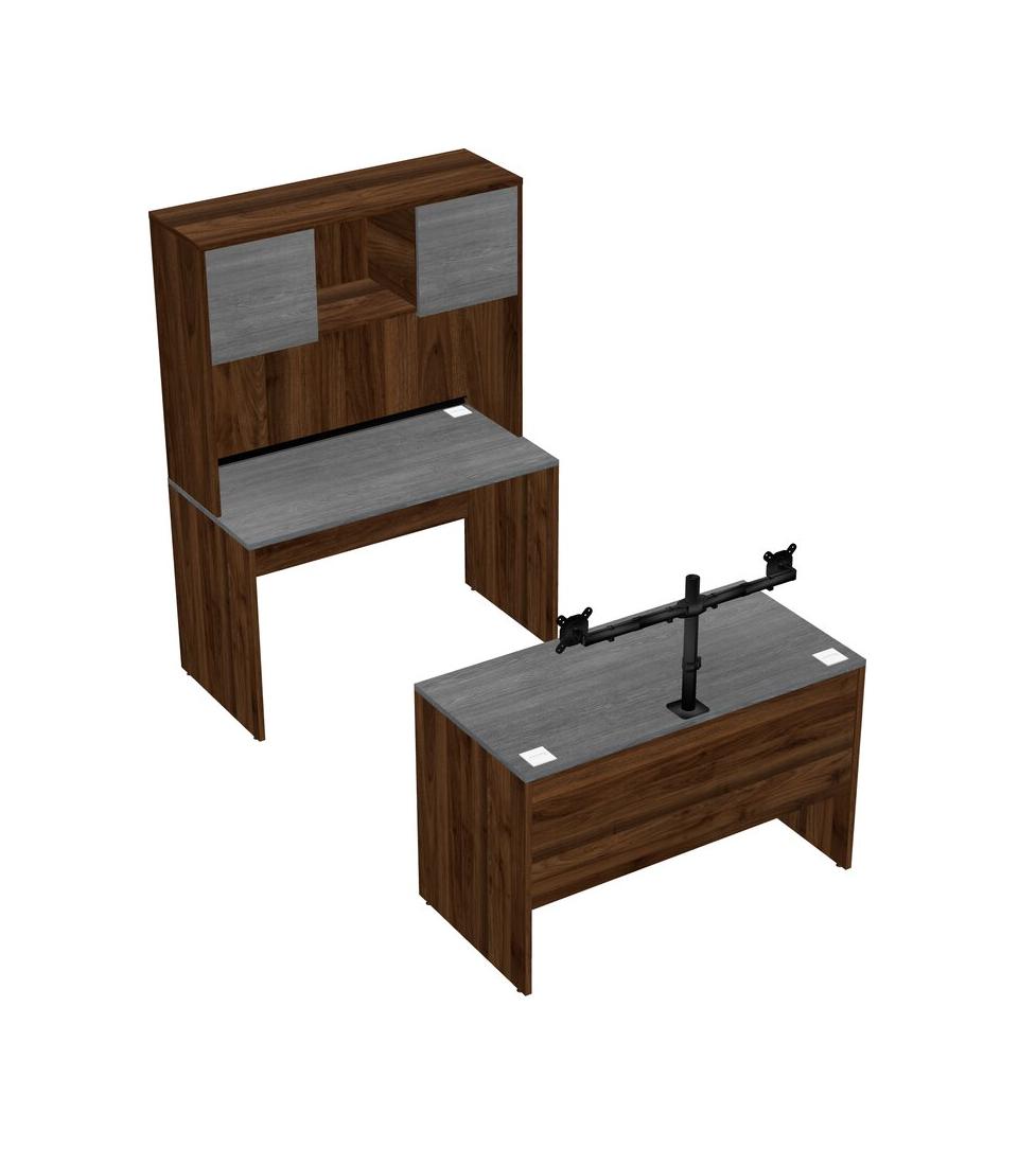 Office Parallel Desk Credenza Desk + Hutch + Monitor Arm (double Arms)