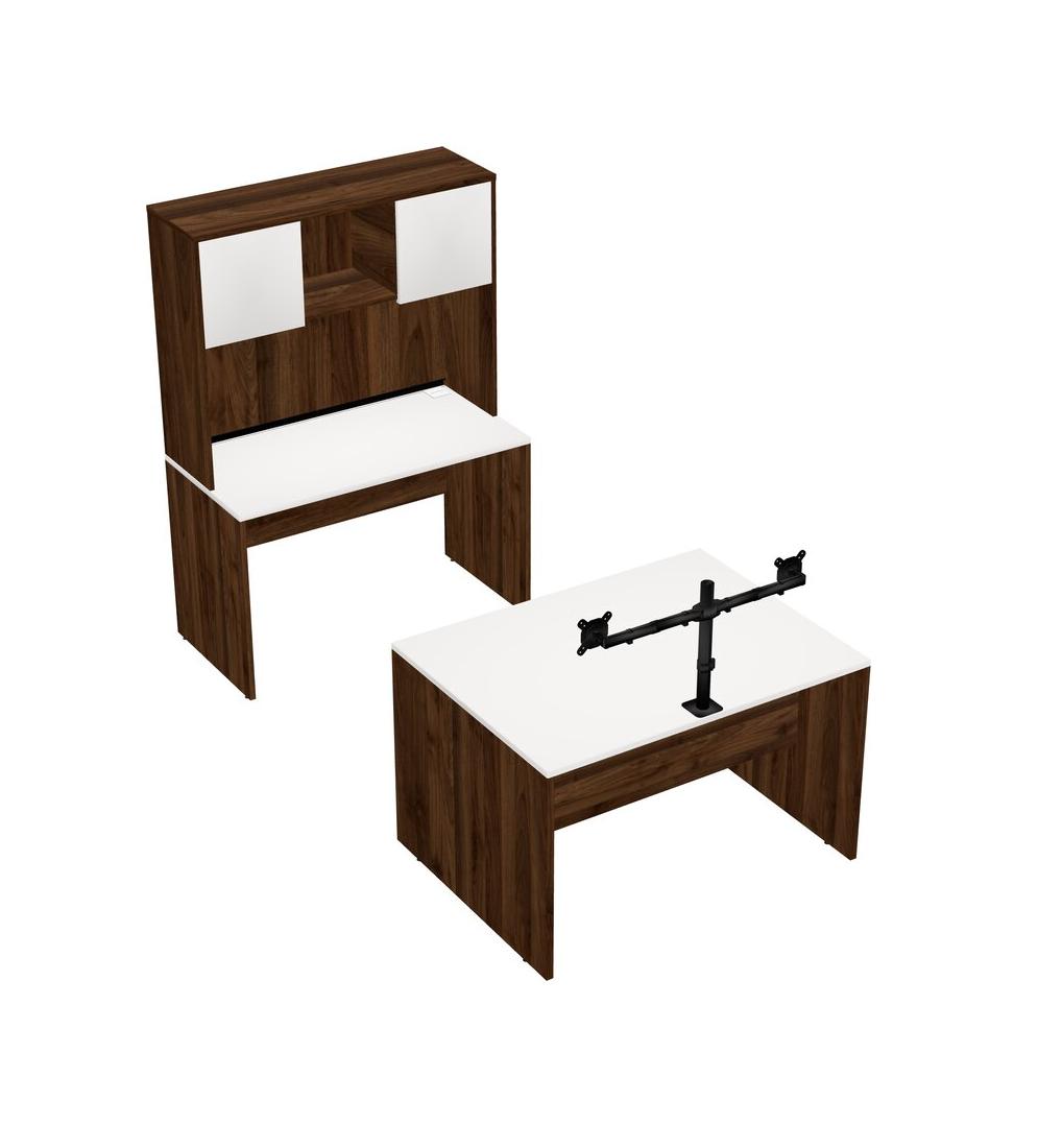 Office Parallel Desk Credenza Desk + Hutch + Monitor Arm (double Arms)