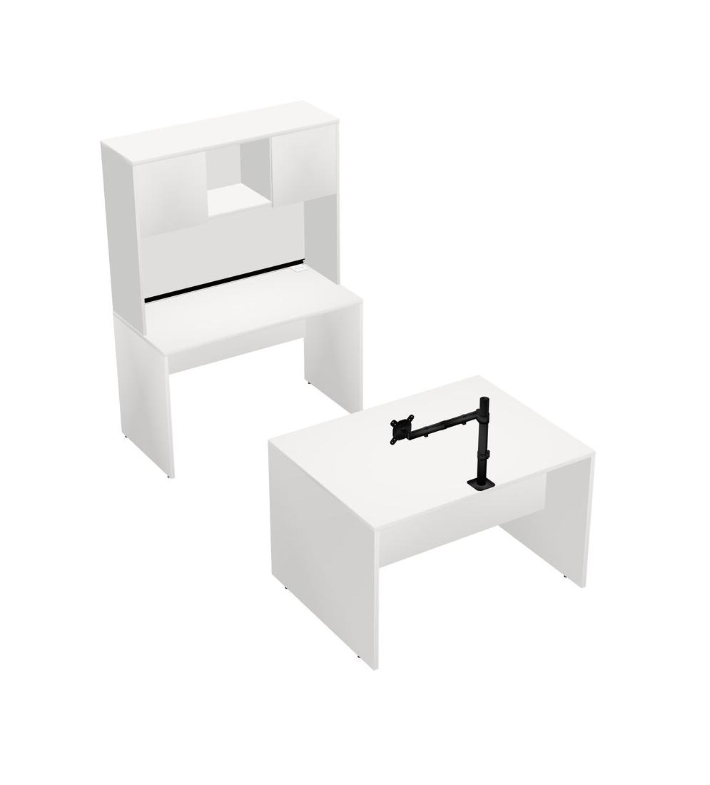 Office Parallel Desk Credenza Desk + Hutch + Monitor Arm (single Arm)